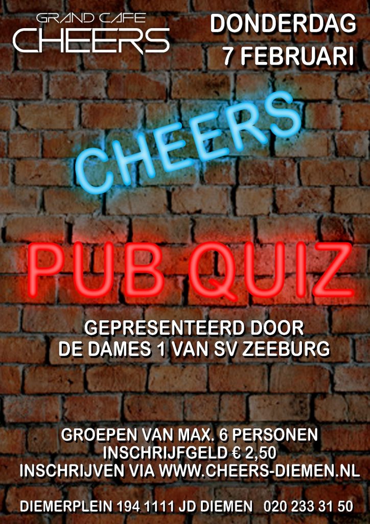 Ook deze 1e quiz van het jaar wordt weer gepresenteerd door de dames van het SV Zeeburg handbalteam. Dit belooft weer een supergezellige avond te worden met uiteraard weer de wisselbeker en leuke prijzen! Waaronder de gratis bon voor het hele team! Dus schrijf je in (max 6 personen per team), kom eventueel gezellig eten vooraf, win de quiz, en de hele bon van de hele avond voor jouw team wordt zo de prullenbak in gegooid!