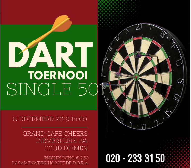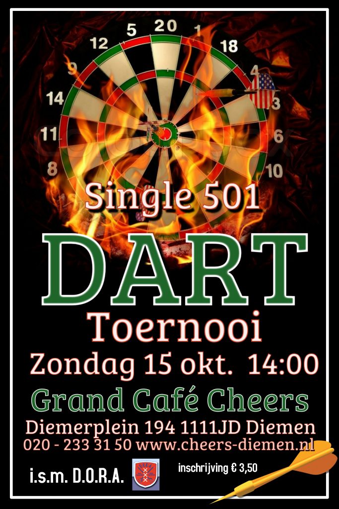 Zondag 4 mei is het zover! Het grootste darttoernooi ooit bij Grand Café Cheers! Met maar liefst 9 banen spelen wij die dag een single 501 en tijdens dit toernooi ook een 1 leg 301 toernooi. Allebei met prachtige prijzen en uiteraard alles met Dartconnect! Tevens omdat het de 50e keer is voor onze organisator […]