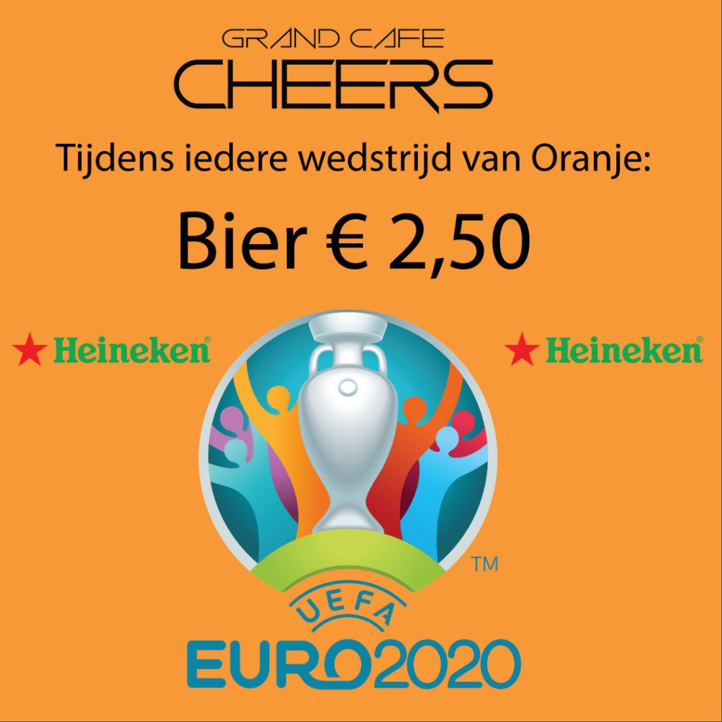 Vanaf nu is iedere wedstrijd van oranje ook op het terras te bekijken op een mega groot scherm! En uiteraard binnen op 7 schermen! Tijdens de wedstrijd is het bier €2,50 en pitchers bier €12,50! Voetbal kijken doe je zoals altijd bij Cheers!!!