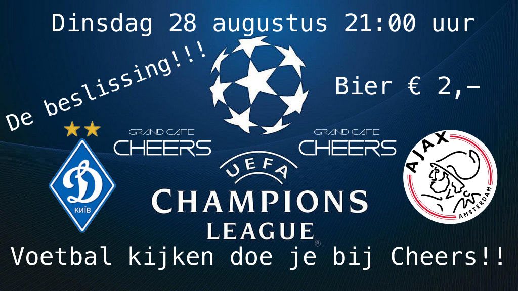 Na de lange reeks om de Champions League te halen zal aanstaande dinsdag de beslissing vallen, wees hier live bij met naar verwachting een vol Grand Café Cheers! We gaan er een feest van maken die je niet mag missen!