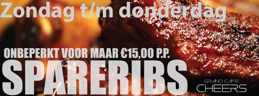 Zondag t/m donderdag!! Onbeperkt spareribs! € 17,50 pp / Evenementen, Nieuws!, Specialiteiten / Door cheers