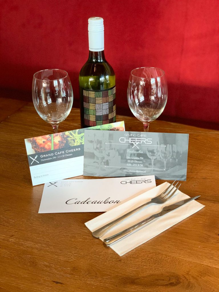 Een leuk idee voor de feestdagen of andere gelegenheid. Een cadeaubon van Grand Cafe Cheers! Ieder bedrag mogelijk en de bon is een jaar geldig.