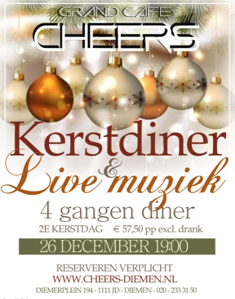 Een spetterend gezellig 4 gangen kerstdiner met live muziek van eigen bodem zoals u van ons gewend bent!