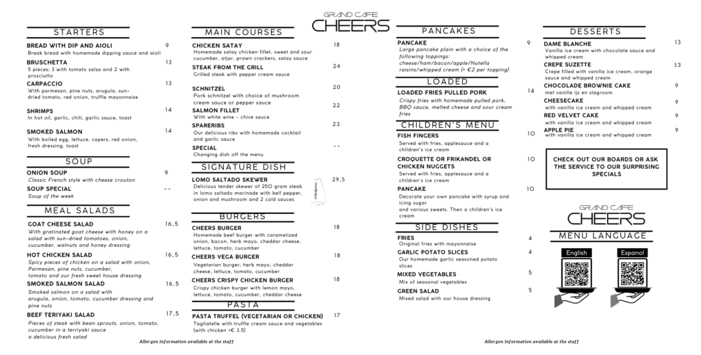 Menu dinner english