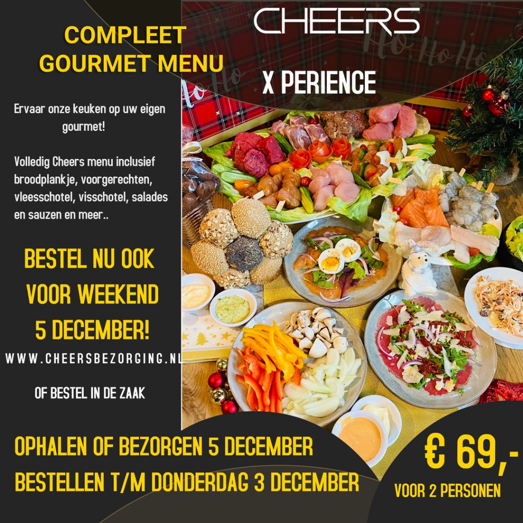 Wegens veel vraag, nu ook te bestellen voor dit Sinterklaas weekend! Compleet Cheers gourmet menu voor 2 personen! Ervaar onze keuken op uw eigen gourmet! U heeft alleen nog servies en drank nodig!Bestel op www.Cheersbezorging.nl of kom langs in de zaak.
