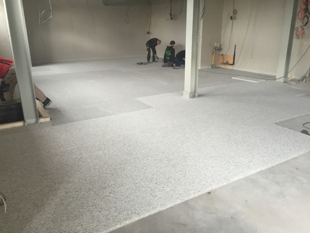 Alles loopt op schema en er is een hoop gedaan. Deze week zijn de gasmeter en de elektra meter verhoogd naar de benodigde capaciteit, de geluidswanden zijn allemaal gezet, de bekabeling is allemaal geplaatst in het plafond, en de geluidsvloer is zojuist ingegoten die nu tijdens de paas dagen rustig kan drogen.